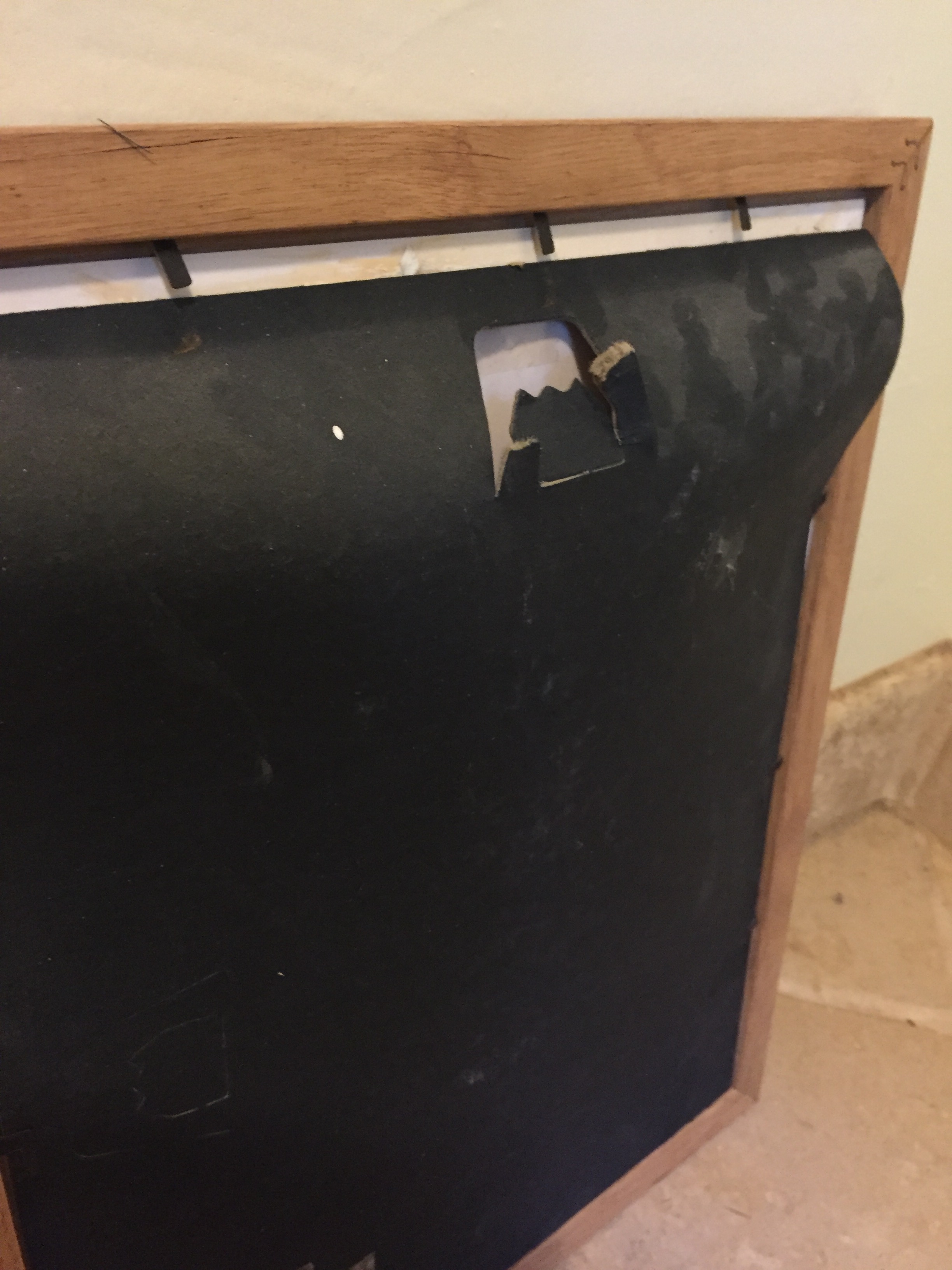 So, it’s been literally years. And remember there is no going back; it’s all in the rear view mirror no matter what. I make a good sound choice to move forward, a decision it’s time to move out of the “nun” role and invited a good friend to share our birthday celebration weekend here at the cabin. The cabin where my husband died, (in what feels like ages ago due to the multitudinous challenges with his company since his death.) Okay, you’re getting the picture. We are in the shower; Mr C gets out and is drying near the sink. I’m still in the shower. And no I’m not giving nitty gritty details. All of a sudden at that exact moment, the picture on the wall falls, slamming to the floor. A piece of hook from the back of the picture is still on the wall. See exhibit A below. And the back of the photo looks like it’s been literally pulled hard off the wall. See exhibit B. It’s pretty up front and real. The picture just gave way at that exact fortitudinous moment after all these years or it had help? You decide.